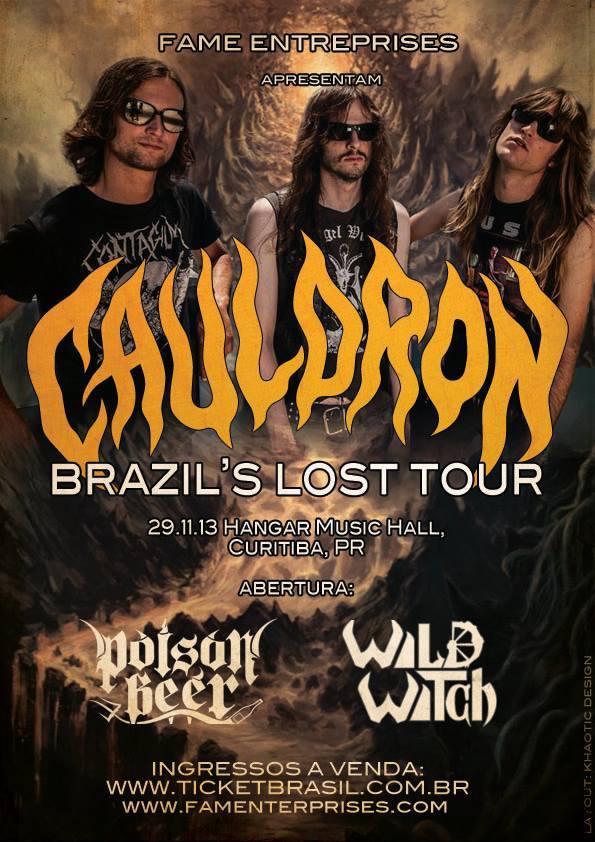 A banda canadense Cauldron, formada no Canadá em 2006, chega ao Brasil nos próximos dias para uma série de apresentações. Serão seis shows, a saber: Belo Horizonte (26/11), Rio de Janeiro (27), São Paulo (28), Curitiba (29), Atibaia (30) e Porto Alegre (01/12).