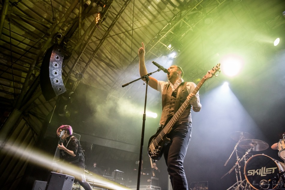 Foi justamente o que os americanos do Skillet trouxeram para o Rio de Janeiro. Se você esperava algo mais estático que o comum, se enganou. John e Korey Cooper trataram de incendiar a árvore da vi… Quer dizer, o público com uma força descomunal – movimentação, headbangs, clássicos da discografia. Jen Ledger tem sido responsável por cativar o coração dos panheads – com sua beleza, seus cabelos ruivos e seu domínio dos pratos, a baterista foi ovacionada quando chegou sua vez de cantar. Não pudemos ver a mesma energia vinda de Seth Morrison, guitarrista. Dos 6 (se formos contar com Chu e Olsen, integrantes de tour), era o que menos chamava atenção no palco.