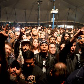 Após a surpresa bem-vinda, seguiram com “Convicted In Life” nos lembrando do disco baseado na obra “A Divina Comédia”. “Dialog” trouxe uma boa resposta do público, mas o circo do Sesc pegou fogo com “Attitude”. E se o povo se esbaldou nas rodas ao longo desta canção, nada nos preparou para a medley de “Biotech Is Godzilla” com “Polícia” (cover do Titãs) que, com o perdão do trocadilho, trouxe o “Chaos” ao local, com rodas se formando e muitas pessoas se jogando em mosh pit. Andreas agradeceu a todos pela participação massiva, dizendo que aquele era o espirito dos fãs do Sepultura. Que mais que fãs, o grupo tem uma verdadeira nação – a deixa para “Sepulnation” dar as caras na noite.