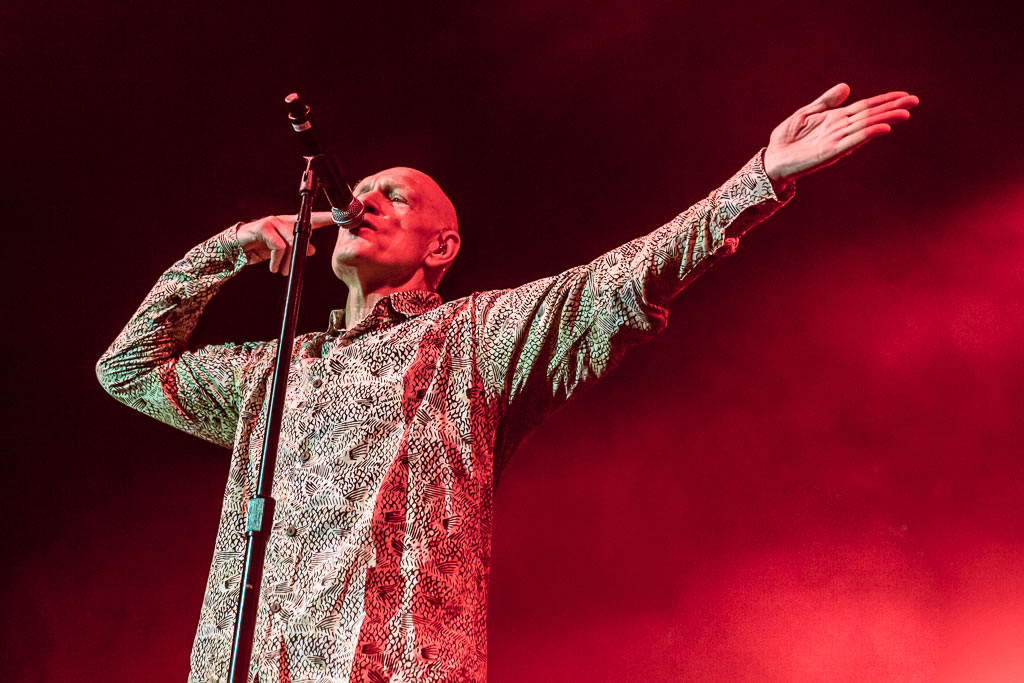 Seguindo sem interrupções com “Warakurna”, “Dreamworld” e “My Country”, o show teve mais uma breve pausa para Peter conversar com o público (também em português) enquanto a banda trocava os instrumentos para começar um trecho acústico. Seguiu-se um dos pontos mais altos da noite: uma versão acústica de “When The Generals Talk” foi executada pela banda e cantada por Peter e pelo público em uma só voz. “Luritja Way” veio em seguida, também na versão acústica, e logo depois outro ponto emocionante: “US Forces”, uma das músicas mais esperadas pelos fãs foi cantada também por todos os presentes. Aliás, vale abrir parênteses sobre essa questão de “pontos altos” no show, o Midnight Oil foi um daqueles shows nos quais chega a ser difícil dizer qual ponto foi mais alto, pois não existem pontos baixos durante toda a apresentação. Todas as músicas são hits, dançantes e executadas de forma vibrante pela banda, que esbanjava carisma e talento a cada momento. Chega a ser difícil acreditar que todos os membros já estão na casa dos quase 60/70 e poucos anos, dada a energia que demonstravam o tempo todo, além da feição de contentamento dos músicos por serem tão bem acolhidos pelos fãs que cantavam e vibravam junto com a banda.